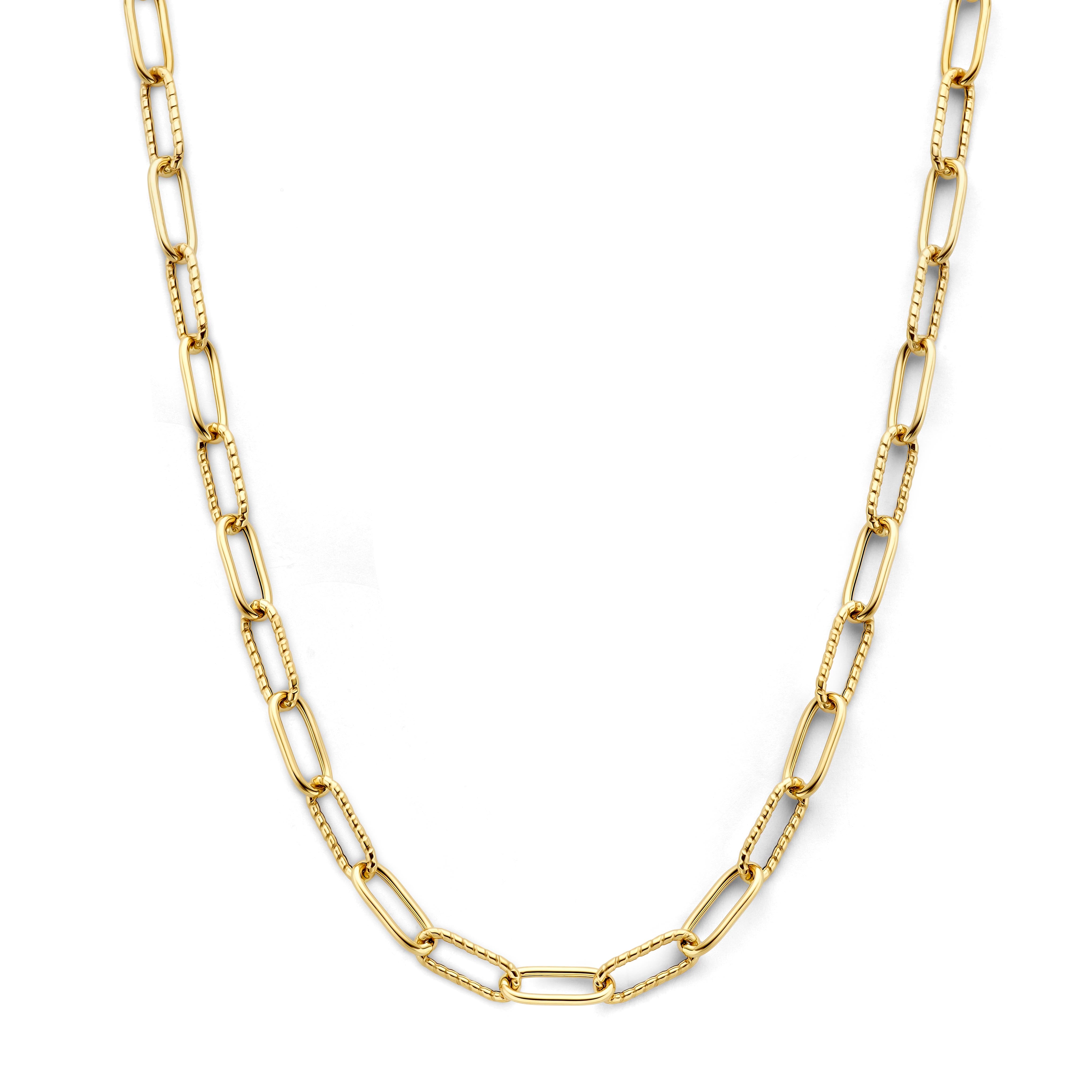 Laat je stijl moeiteloos spreken. Deze ketting speelt met contrast en ritme, een subtiele dans van licht en structuur die elke beweging vangt. De afwisseling van glans en textuur geeft het geheel een verfijnde levendigheid, als een stille dialoog tussen elegantie en karakter. Draag haar solo voor een moderne, krachtige look of combineer met andere kettingen voor een gelaagde uitstraling met diepgang. Een sieraad dat eenvoud verheft tot iets bijzonders.