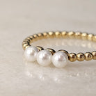 Ontdek de perfecte balans tussen stijl en verfijning met de Pearl Dots ring van 14 karaat goud, versierd met schitterende zoutwater parels die elke outfit naar een hoger niveau tillen. Deze elegante ring is een onmisbare aanvulling voor elke sieradencollectie en voegt een vleugje luxe toe aan elke gelegenheid.